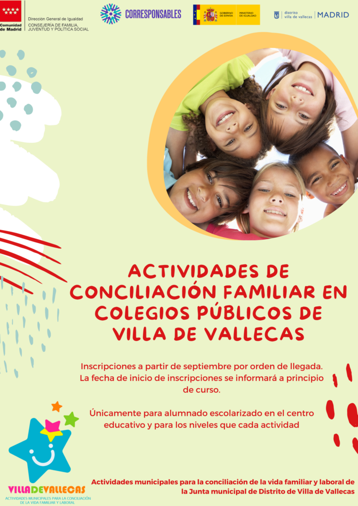 Desde el 17/1/2024 se abren inscripciones para cubrir plazas vacantes en las actividades municipales de conciliación de la Junta del Distrito Villa de Vallecas.